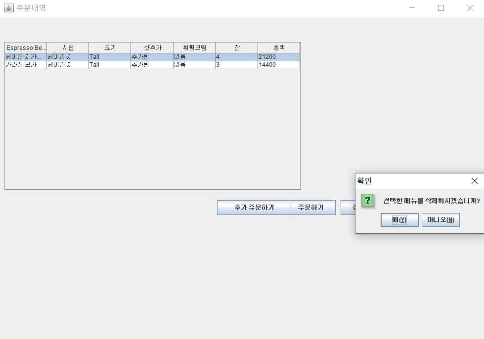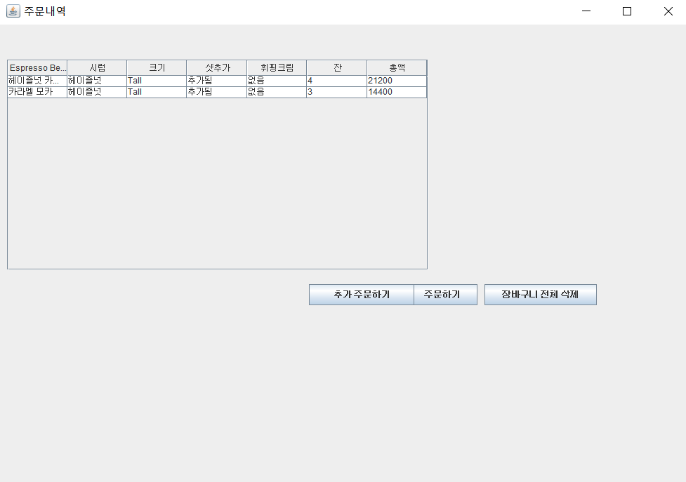 소스 코드 : https://github.com/loy124/JAVA_COFEE_ORDER