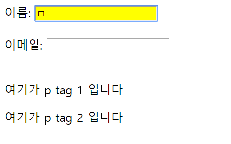 이름: <input type="text"><br><br> 이메일: <input type="text"><br><br>