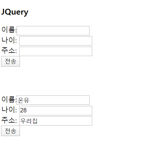 이름:<input type="text" id="_name" name="name"><br> 나이: