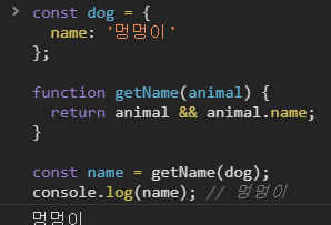 return animal && animal.name;