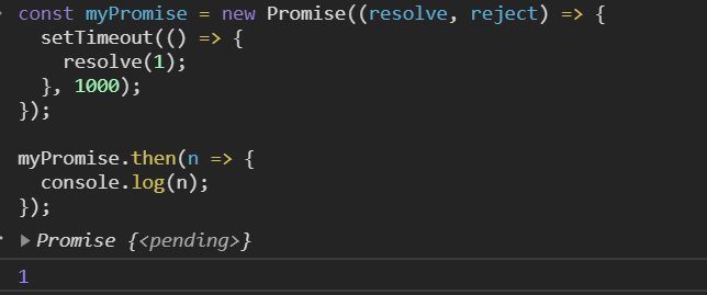 위의 코드는 1초뒤에 실패되는 코드다 .then은 성공시 사용하고 reject는 실패시 .catch 를통해 수행할 작업을 설정 할 수 있다.