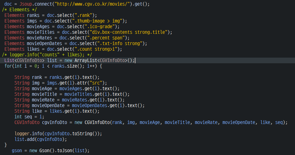해당 홈페이지의 현재 상영 목록을 Jsoup을 활용해 크롤링으로 가져왔고