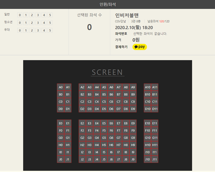 예약하기를 누르면 좌석 선택창으로 이동된다