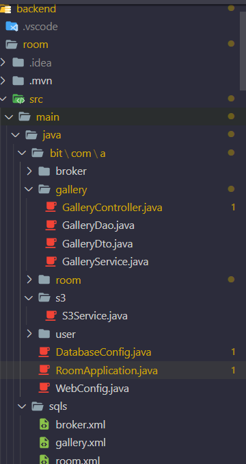 gallery 폴더: 이미지관련 controller, dao, dto, service 종합