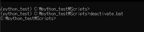 deactivate.bat을 작성하면 그전 cmd 환경으로 돌아온다.