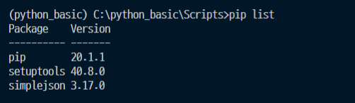 pip list를 통해 설치한 목록들을 조회 가능하다.