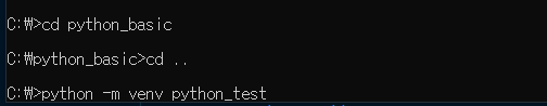 해당 python_test/scripts로 이동해서 activate.bat을 실행하면
