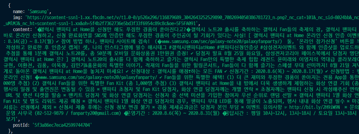 크롤링이 정상적으로 잘 되는것을 확인 할 수 있다.