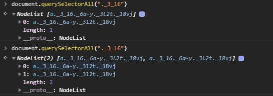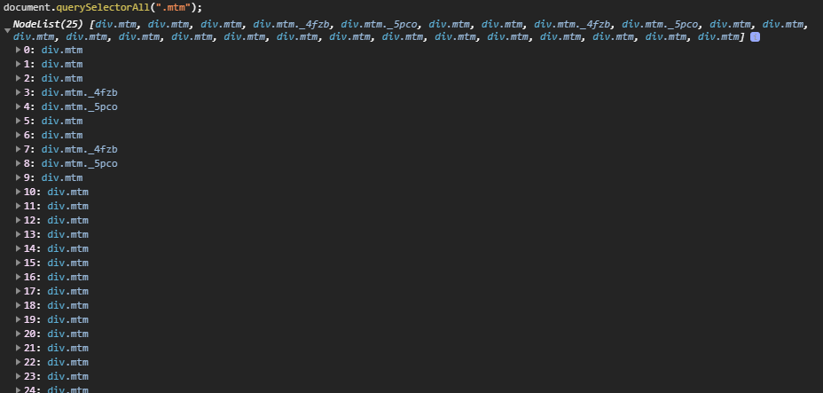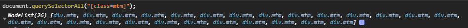 // document.querySelectorAll("[class=mtm]") 을하면 class가 딱 mtm인 경우만 출력이 된다.