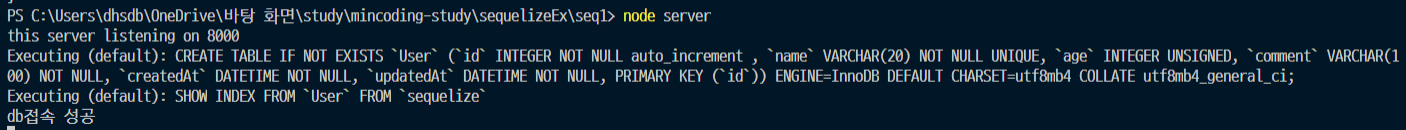 서버실행시 일단 정상적으로 DB 접속이 가능하다.