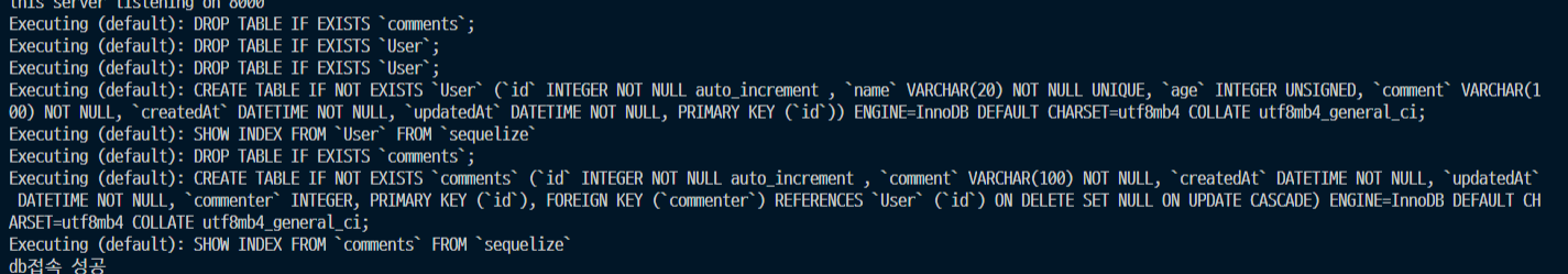 sequelize.sync({force: false}).then(() => console.log("db접속 성공")).catch(err => console.log(err));