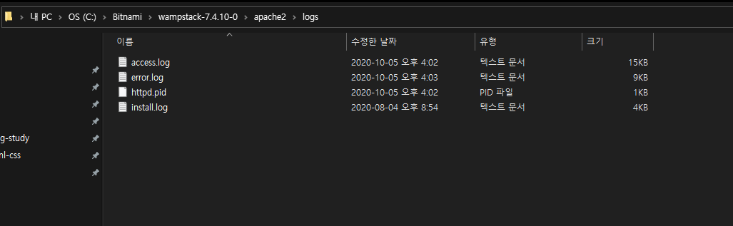 apache2/logs 에서 에러 로그 조회가 가능하다