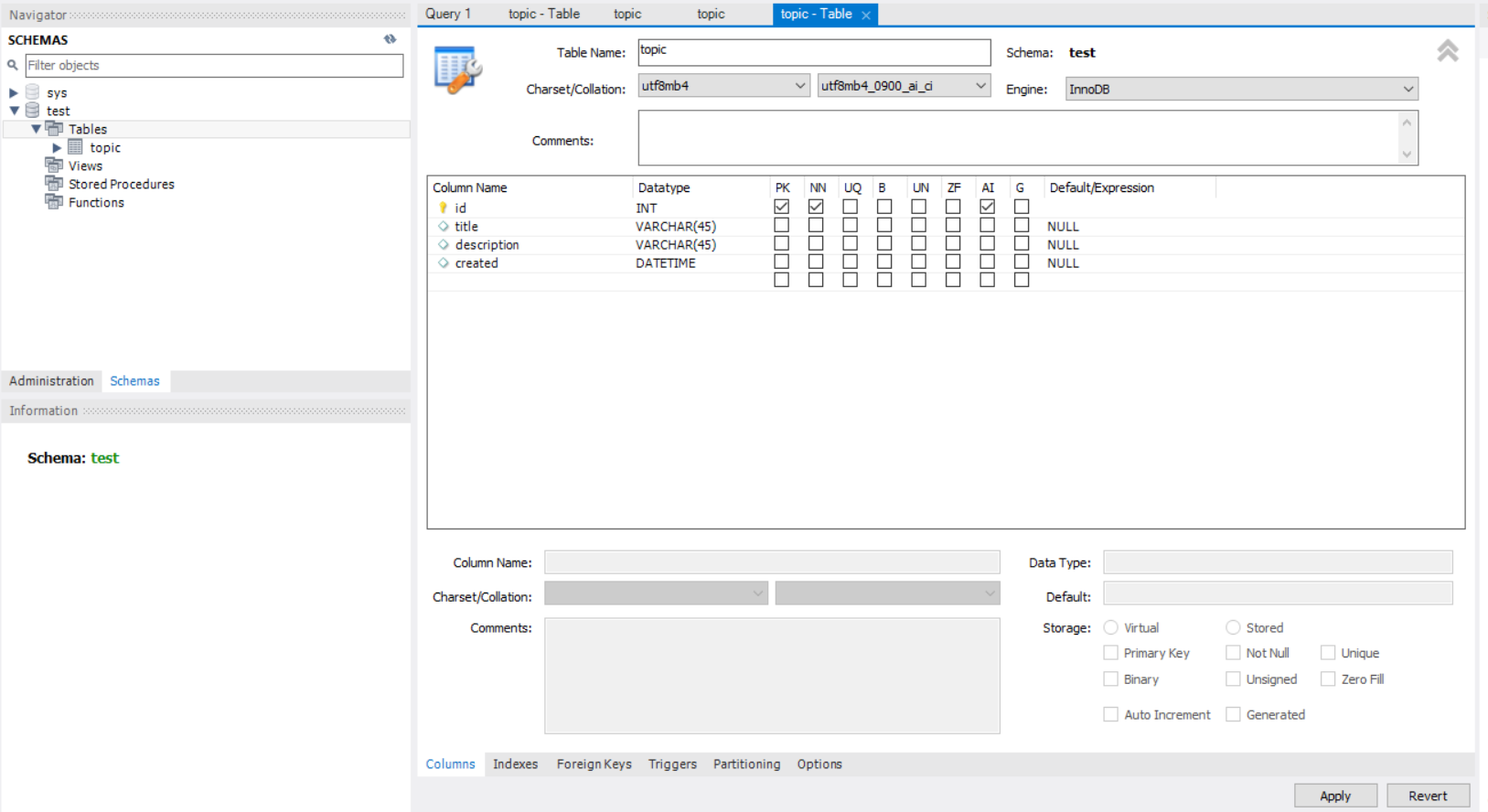 기초 mysql DB(스키마)와 테이블을 생성해준다