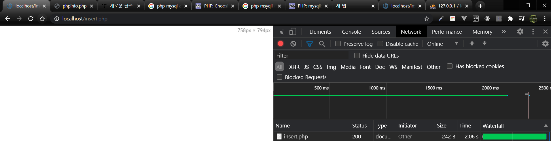 localhost/insert.php 에 접속해서 DB를 통해 데이터가 접근이 되는지 확인한다