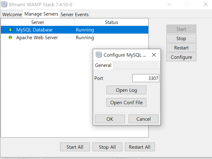 WAMP manager에 있는 mysql database의 Port를 확인해두고