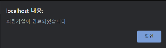 alert("회원가입이 완료되었습니다");
