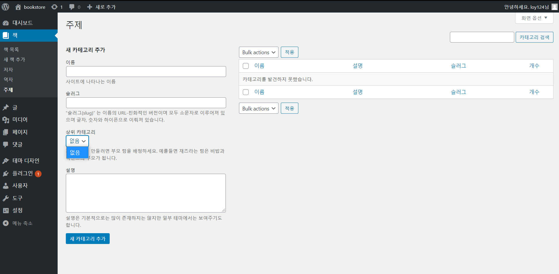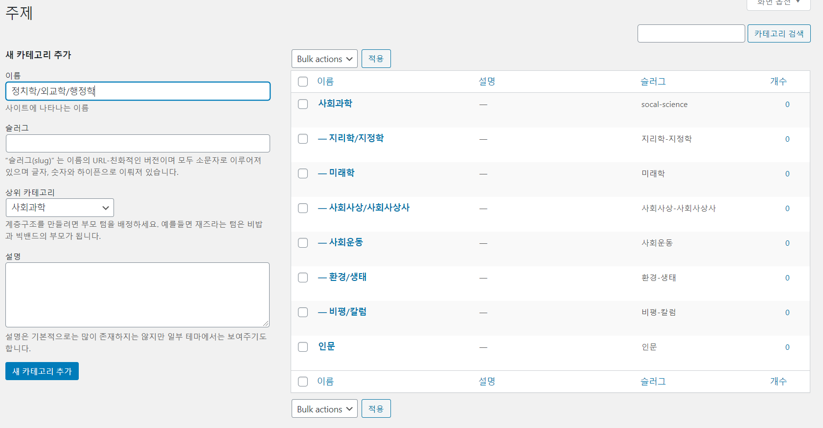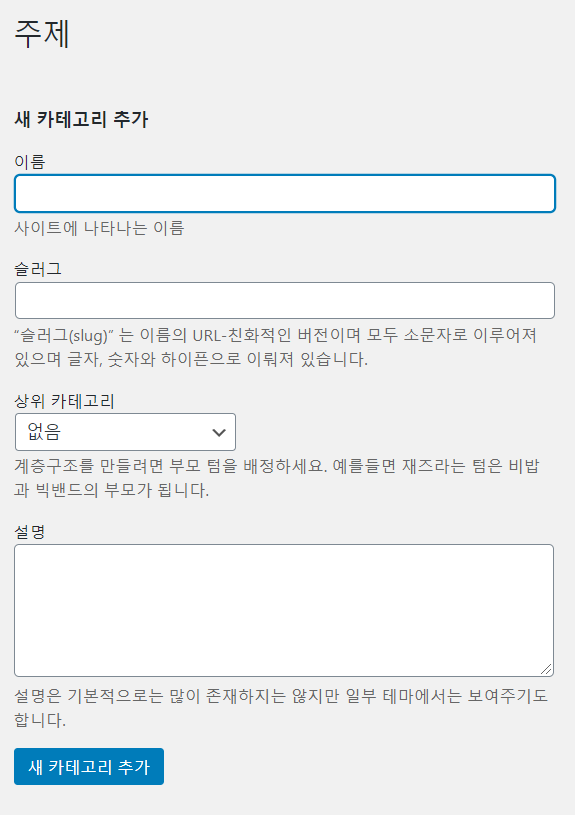기존과 다르게 상위카테고리를 선택하는 란이 생긴다. 즉 계층형 구조로 변경이 된다.
