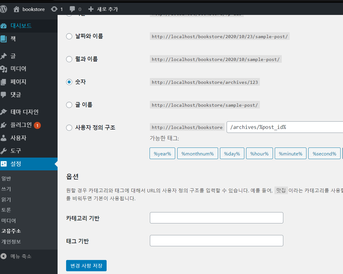 설정- 고유주소에 가서 업데이트 후 (변경사항 저장)