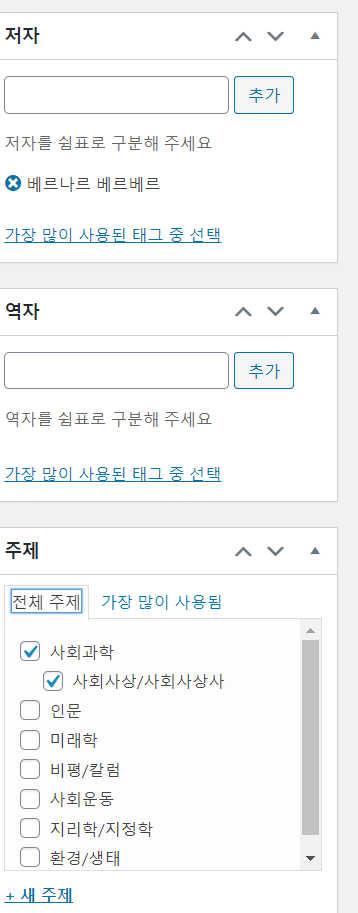 새책 추가시 이제 저자, 역자, 주제 모두 수정할 수 있게 된다.