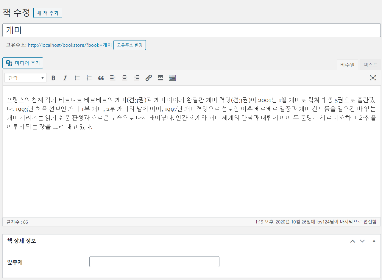 위와같이 책 상세 정보 부분및 앞부제가 나오게 된다.