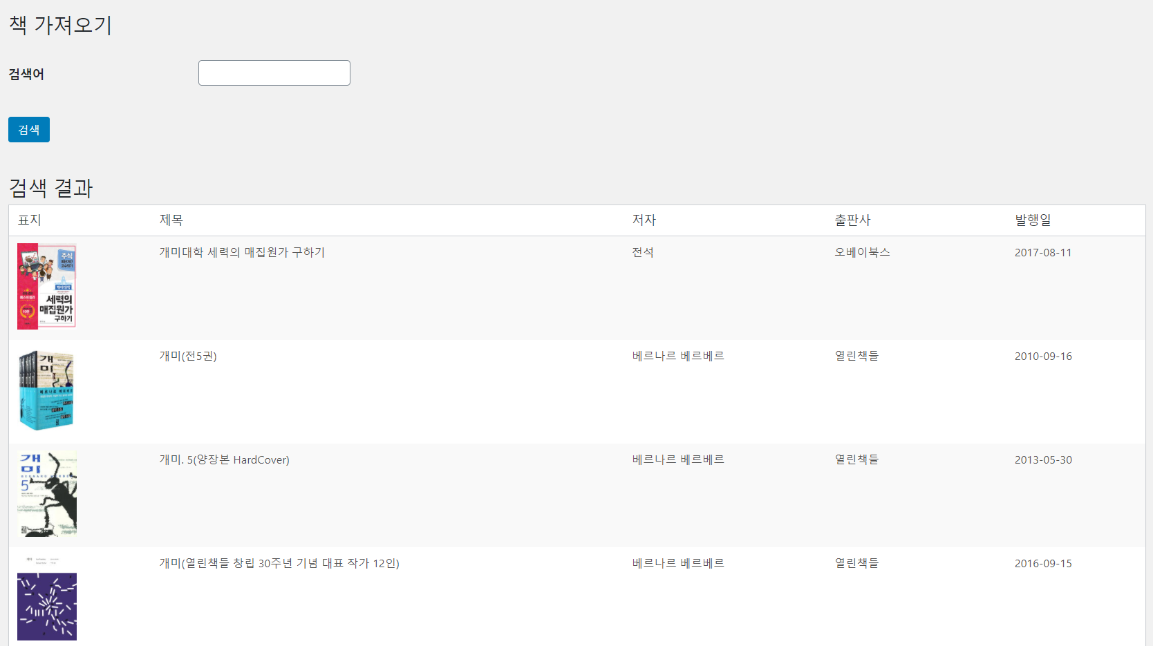 정상적으로 책 가져오기 페이지가 추가되었다.
