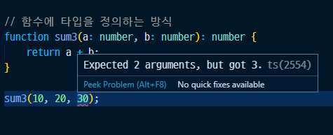 // 함수의 파라미터에 타입을 정의하는 방식