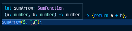 let sumArrow: SumFunction = (a, b) => {return a + b};