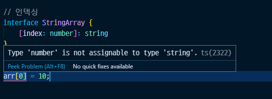 인덱스의 타입은 숫자이고 해당 인덱스로 특정요소를 접근할때의 타입을 명시한다