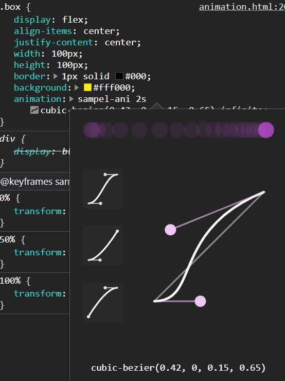 - cubic-bezier(n,n,n,n): 애니메이션 효과가 사용자가 정의한 cubic-bezier 함수에 따라 진행