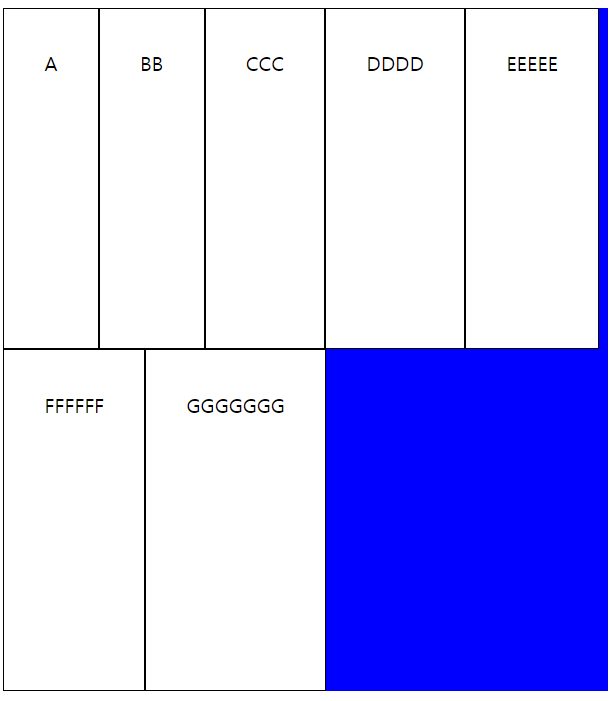 - stretch: 값 말 그대로 스트레칭되서 쭉 늘어나있다. 자식요소들이 교차축을 가득 채운다.