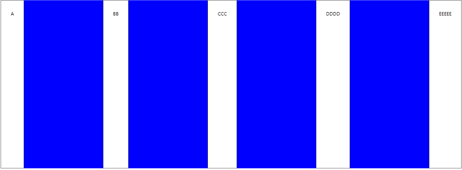 - space-between: 자식요소의 처음과 끝부분은 각 양 끝쪽에 정렬하고 나머지는 비율을 맞춰 정렬한다.