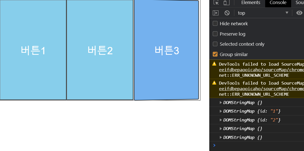 여기서 우리는 각 버튼을 클릭할때마다 button에 있는 data-id를 가져오려고한다.