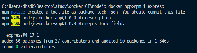 만약에 변경이 없다면 CACHE 처리로 인해 npm install이 실행되지 않는다.
