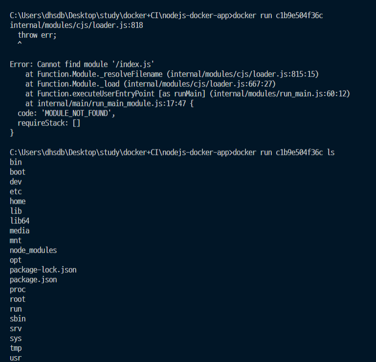 따라서 package.json을 해당 컨테이너 안에 넣어줘야 한다.