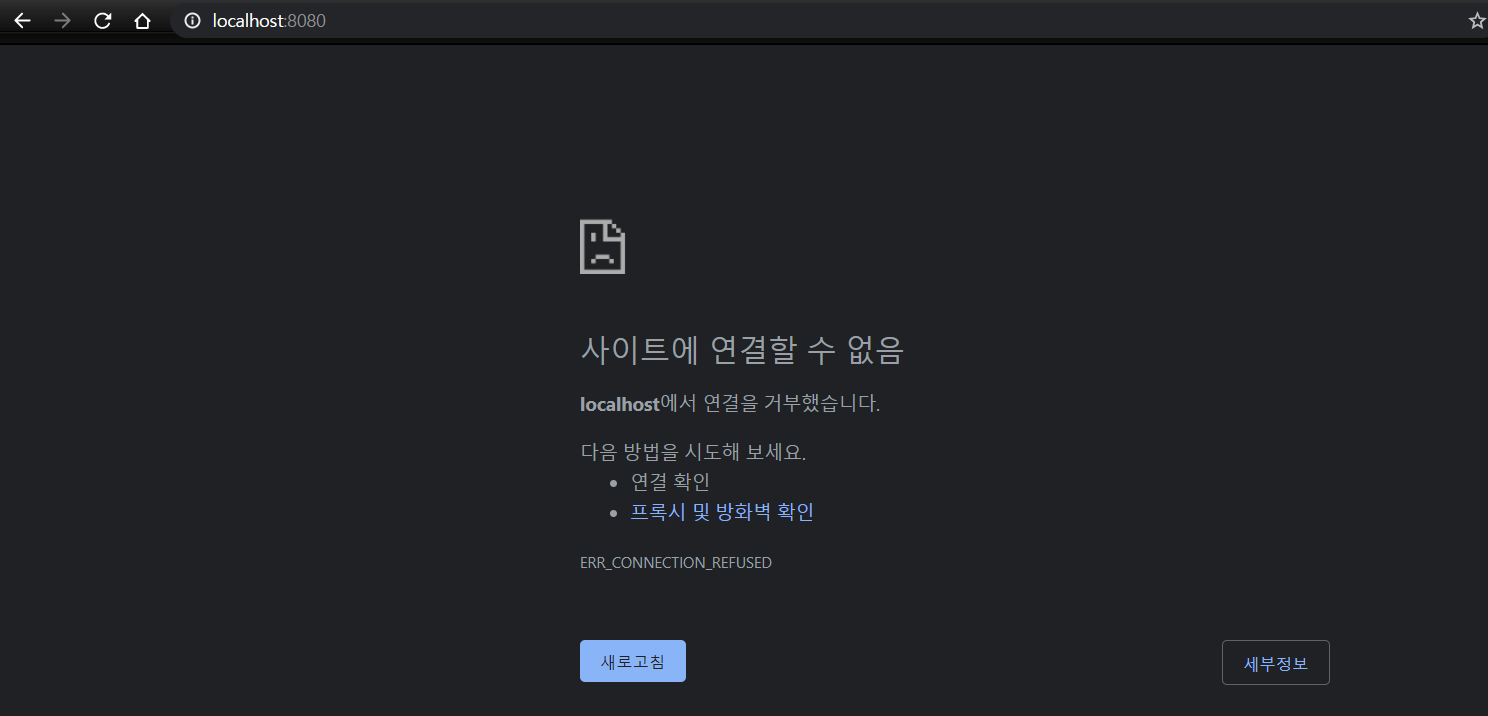 해당 포트로 접근해서 확인해보면 연결을 할 수 없다.