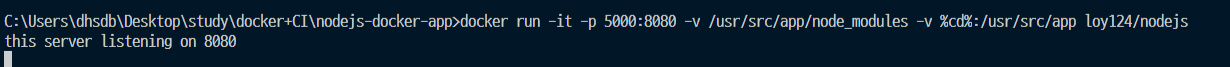 | docker run -p 5000:8080 -v /usr/src/app/node_modules -v $(pwd):/usr/src/app 이미지 아이디 |