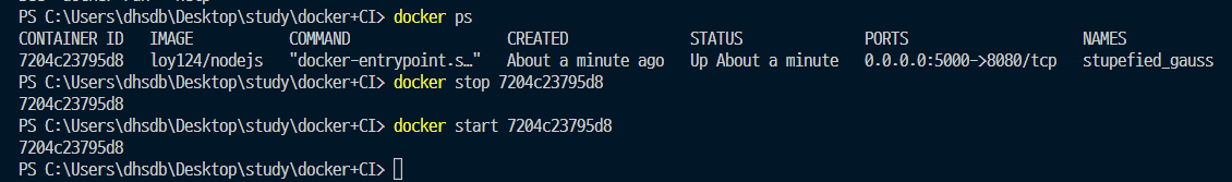 코드를 변경하고 나서 docker 컨테이너를 한번 껐다 켜준다