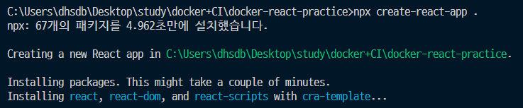 create-react-app을 통해 1회성으로 설치하기 때문에 npm이 아닌 npx로 설치하였습니다.