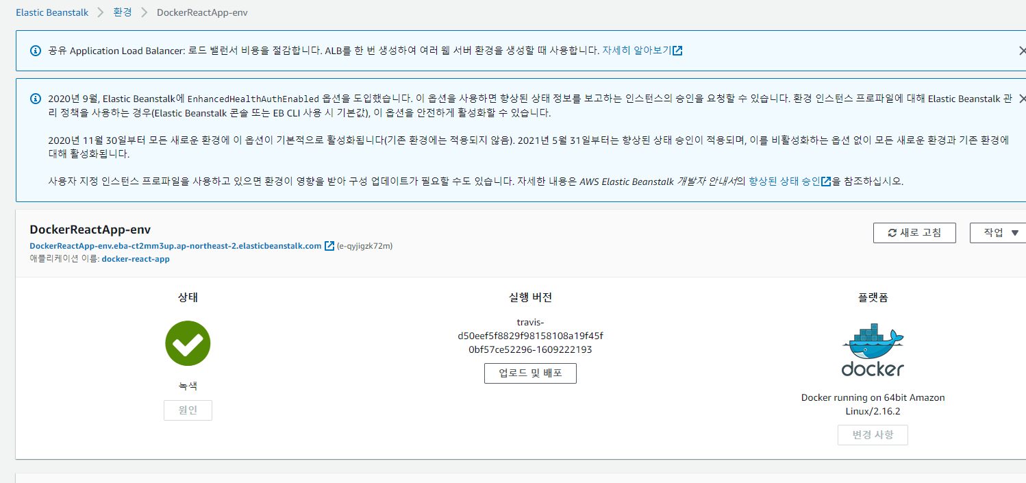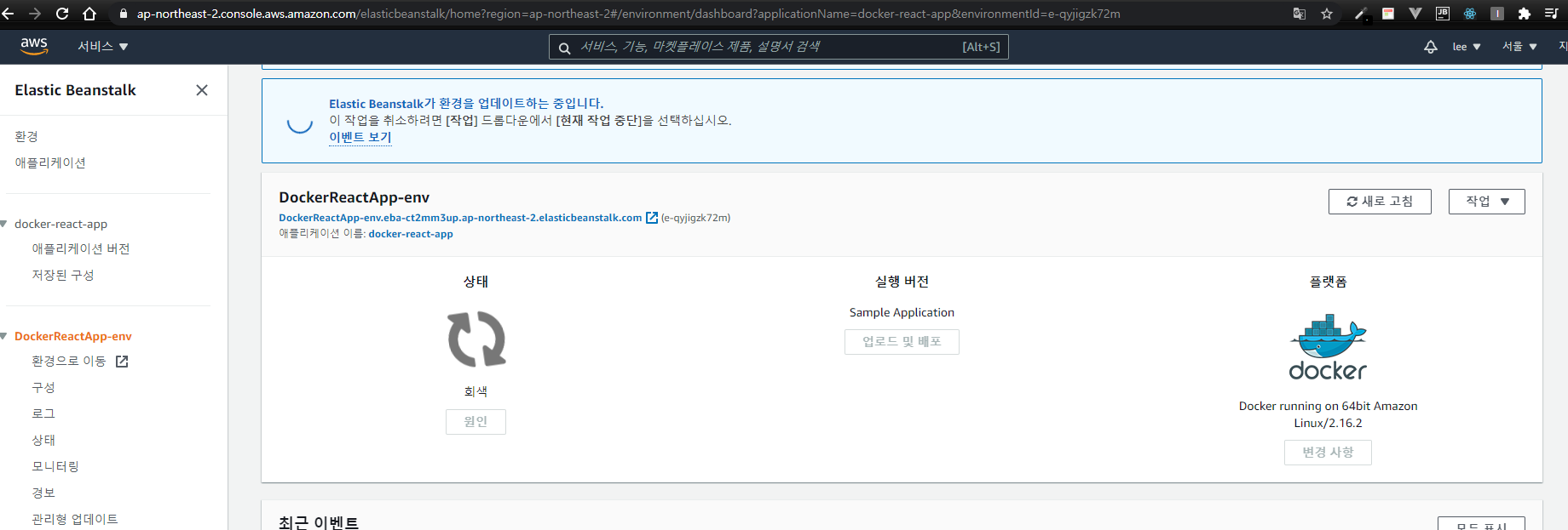 Elastic beanstalk에 방문해 보면 build 중인것을 확인 할 수 있다.