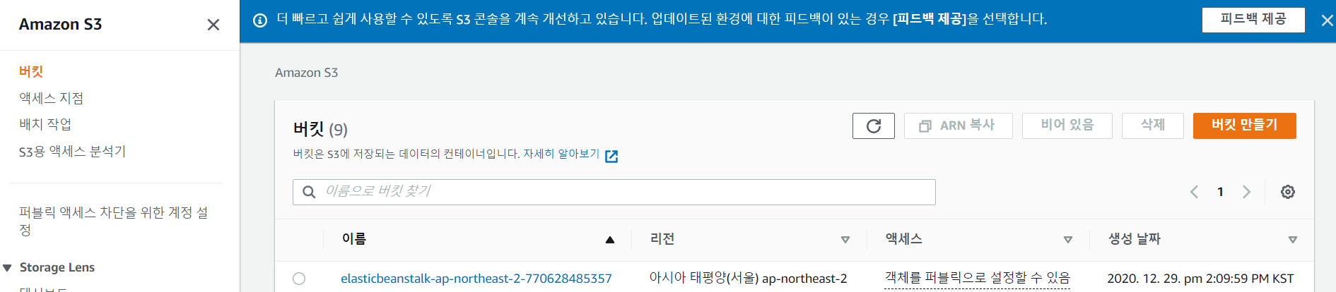 S3에 접속한 이에 대한 버킷이 생성되어있다.