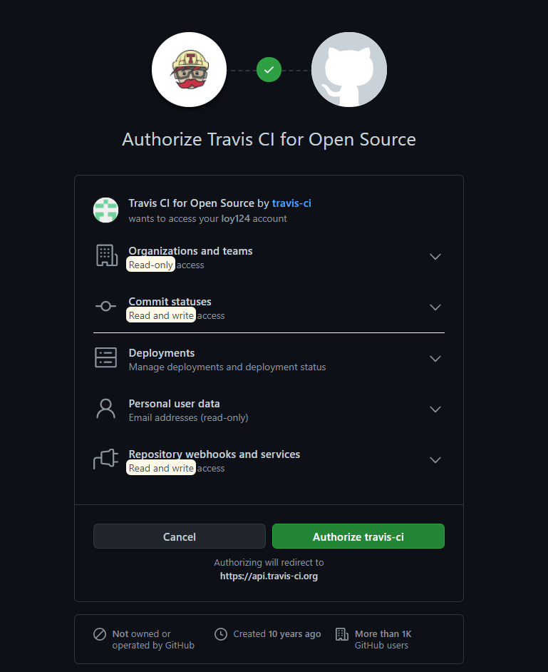 github에서 진행되는 오픈소스 프로젝트를 위한 지속적인 통합(continuous Integration) 서비스