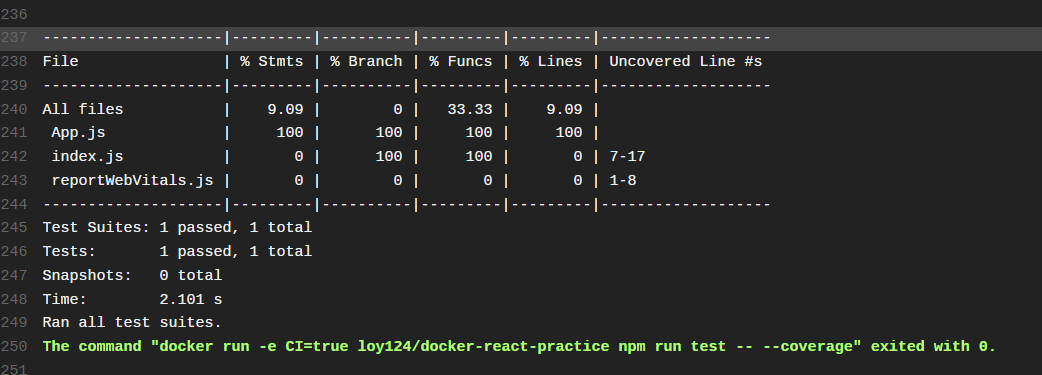 - docker run -e CI=true loy124/docker-react-practice npm run test -- --coverage