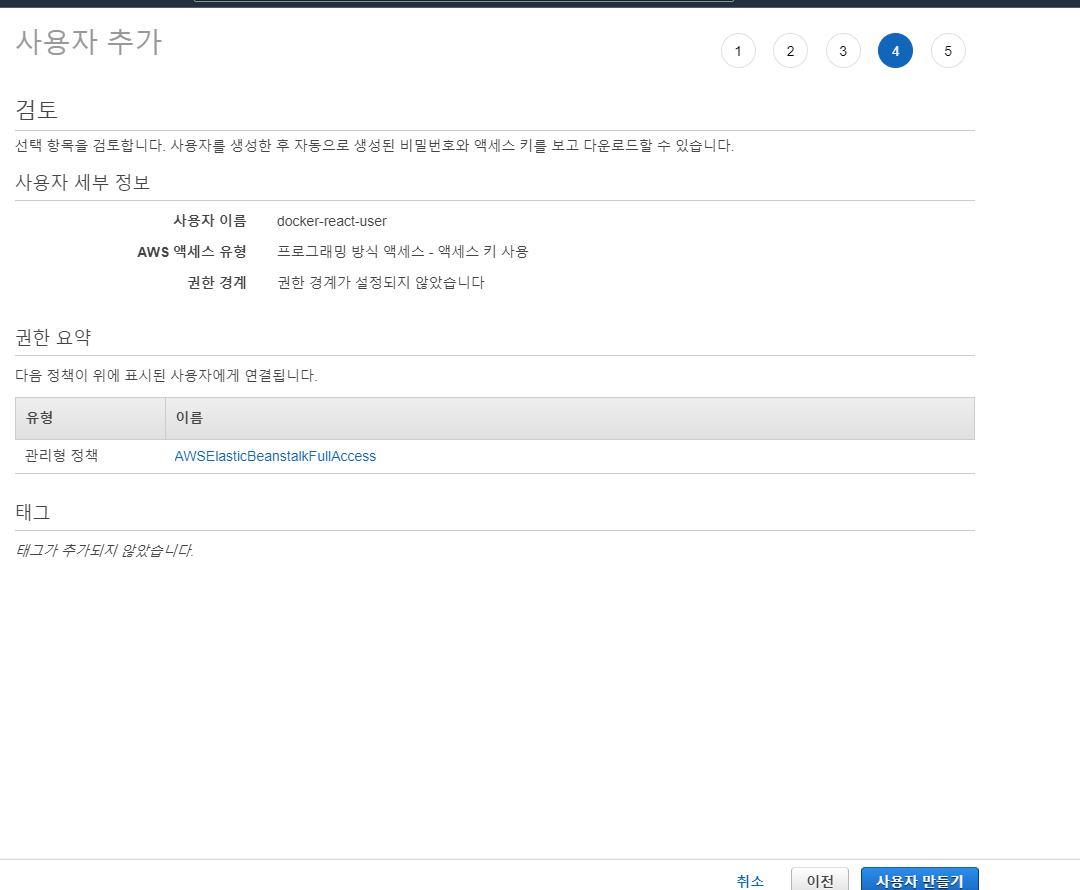 이제 travis CI와 AWS가 실질적으로 소통을 할수 있게 인증해주는 작업 이 필요하다.