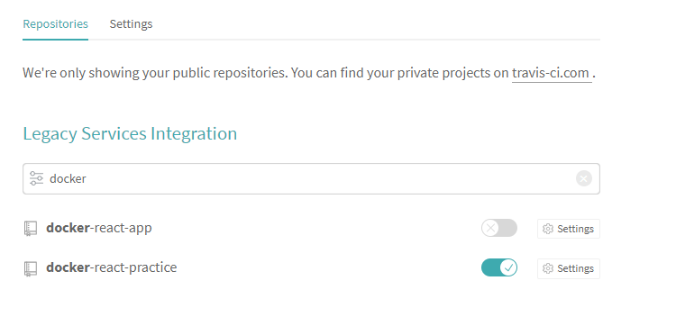 docker 환경에서 하기 때문에 travis의 환경또한 docker로 진행해 주었다.