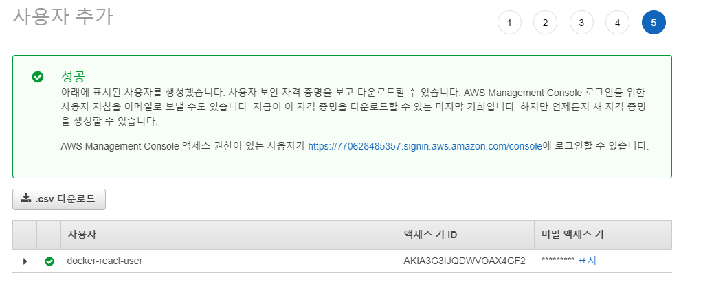 생성을 하면 위와 같이 액세스키ID와 비밀 액세스키 가 나오게 된다.
