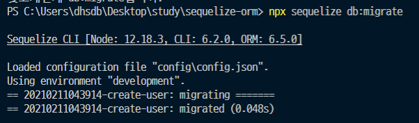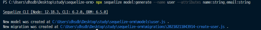 npx sequelize model:generate --name user --attributes name:string,email:string