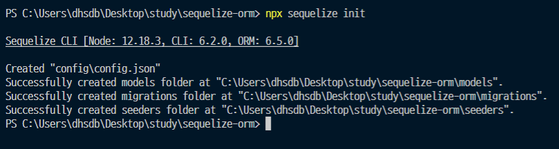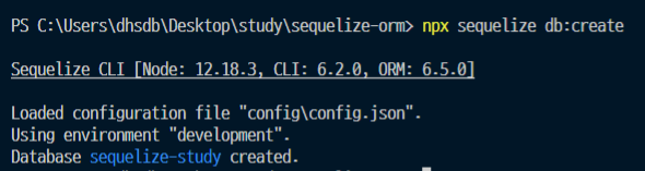 위에 정의한 sequelize-study를 db로 만들어 줄것이다.