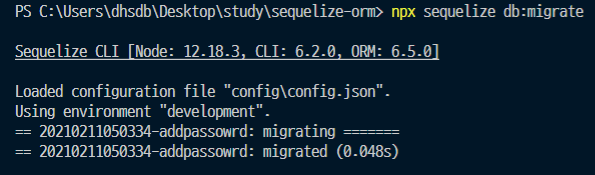 up의 메소드를 실행한다. (한번 정의하면 migrate:undo를 해서 상태를 돌리기 전까지는 돌릴 수 없다)