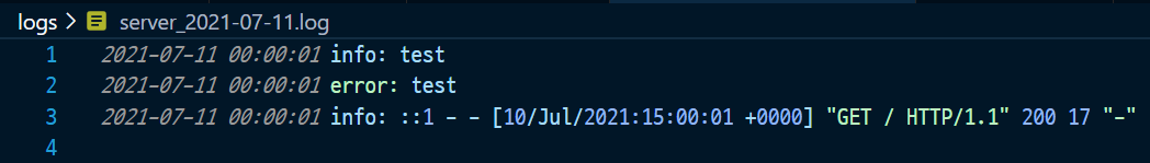 - filename: 로그에 사용할 파일 이름입니다. 이 파일 이름은 파일 이름의 %DATE%해당 지점에 서식이 지정된 datePattern을 포함하는 자리 표시자를 포함할 수 있습니다 . (기본값: 'winston.log.%DATE%')
