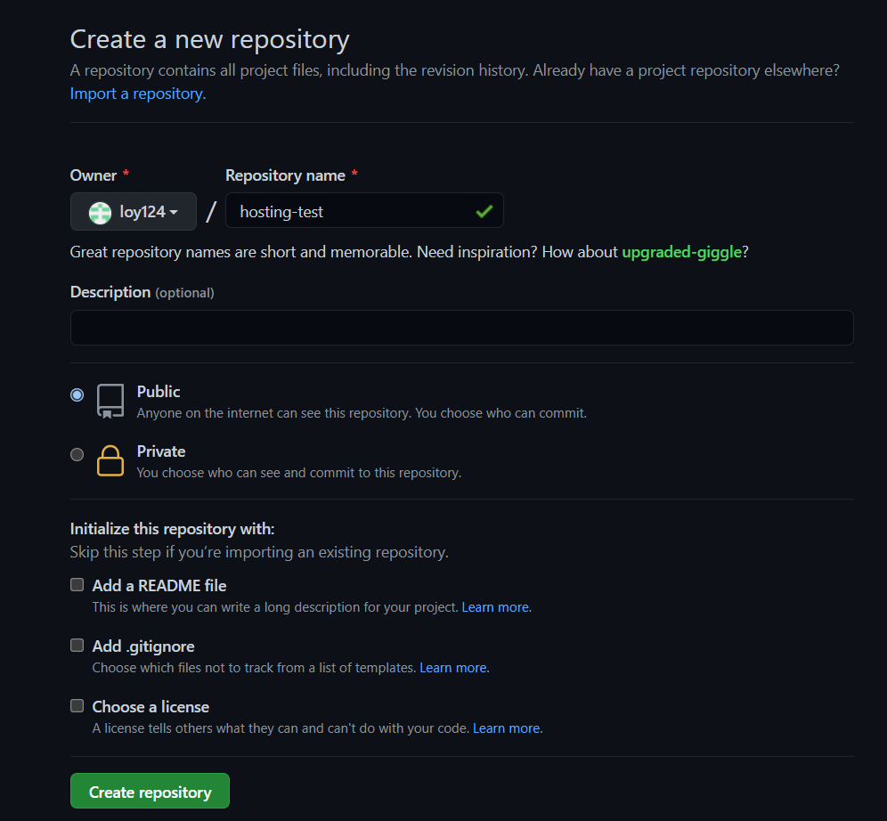 이제 github에 repository를 생성한다.